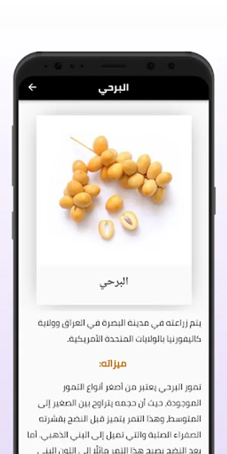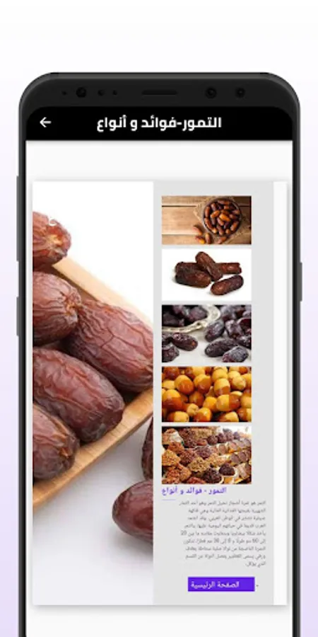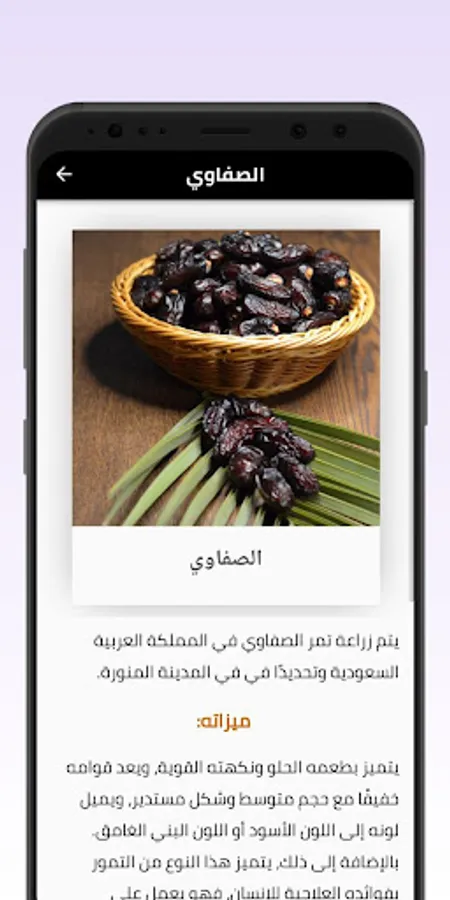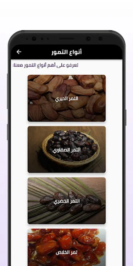 The Dates application offers you the benefits and types of the most important types of dates with their advantages, in addition to the places where they are grown.