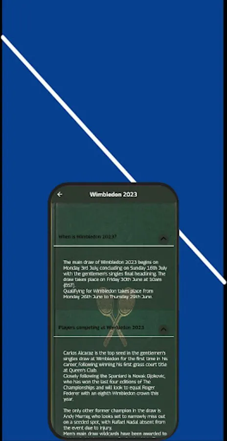 About Wimbledon application includes the most important information about the sport of Wimbledon, The About Wimbledon application includes everything about Wimbledon, its Equipment, Rules and faults, in addition to frequently asked questions and their answers. The application also includes Wallpapers, Wimbledon logo,Wimbledon players and Wimbledon background .