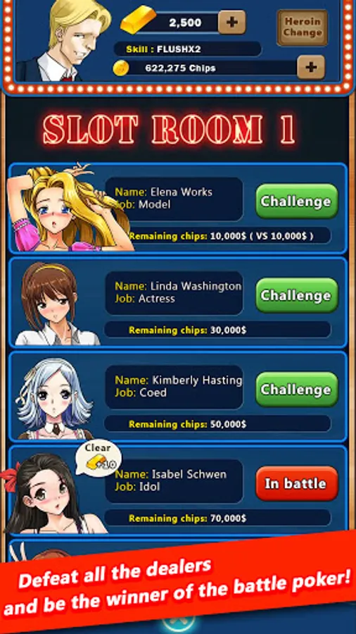 ▶ Defeat all the dealers and be the winner of the battle poker!