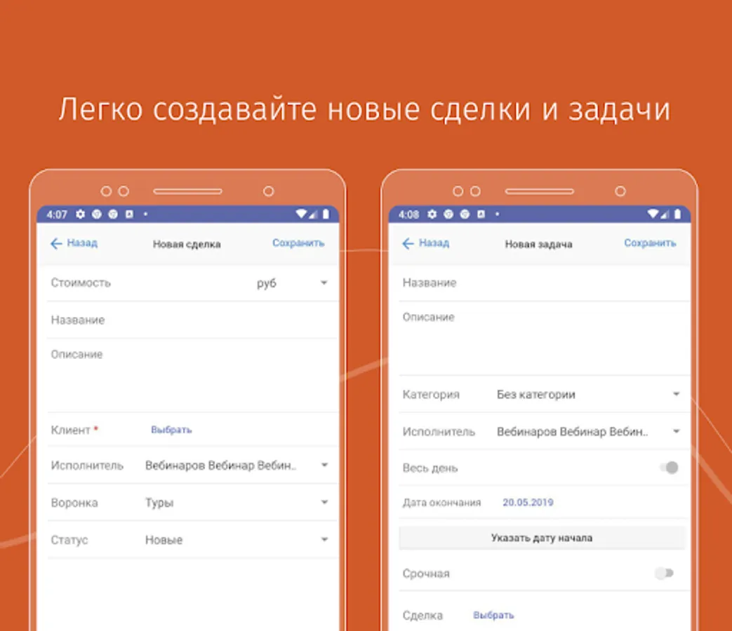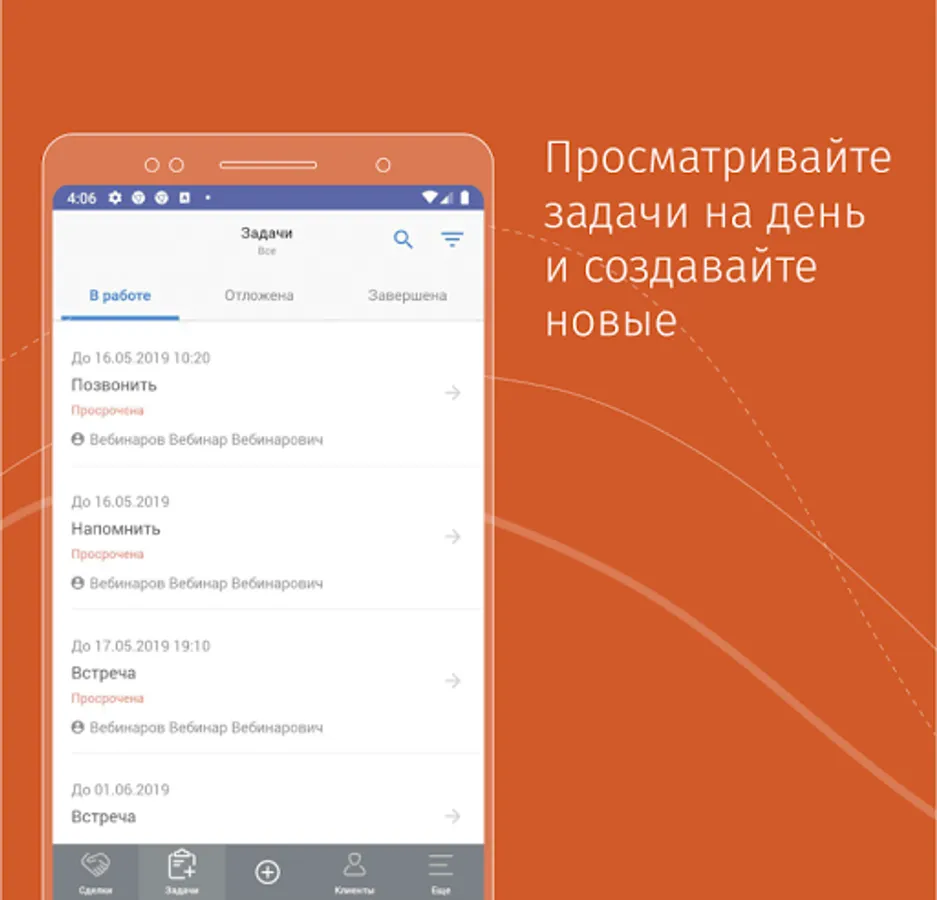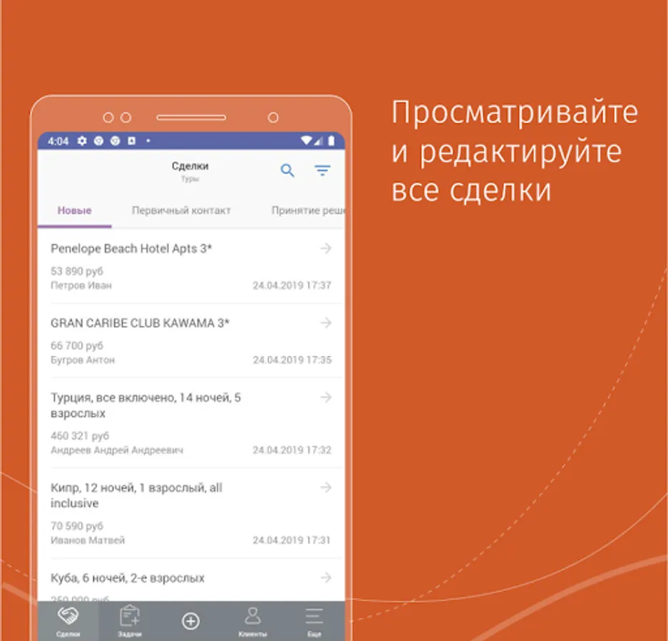 MegaCRM is a tool designed to collect and organize all the elements of your business into a whole picture, simplify, optimize the work of the company and increase sales. With the help of a mobile application, you can more efficiently keep track of customers and transactions, as well as monitor the activities of your managers at any place and at any time! The application does not contain complex functionality, while you can easily and quickly set a new task, monitor the transfer of the transaction to the next stage, leave a comment and view a tape of events on the transaction, and also receive a push notification of an important event, no matter where you are. . Convenient, right?