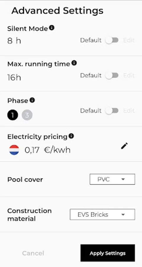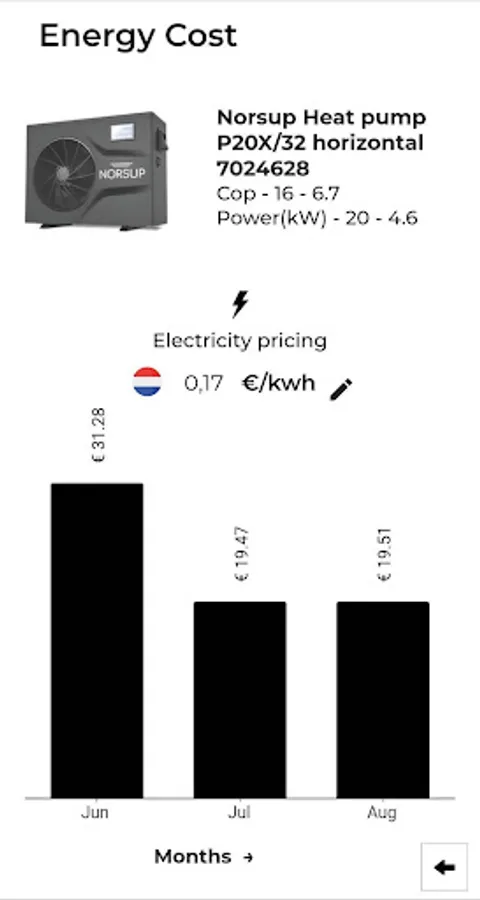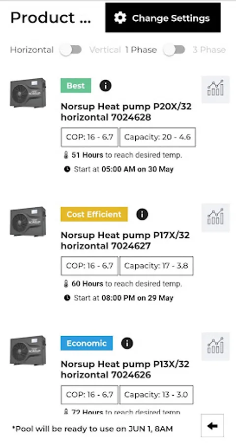 The Heat Pump configurator is a mobile application that helps the installer to find the most suitable heat pump for the customers. The installer can select the heat pump based on location, desired water temperature and volume of the pool. Other advance settings like silent mode, selecting the pool material, setting the maximum running time etc. are also provided with this application. Based on the selection made available heat pumps will be displayed. The installer has the option to evaluate the energy cost of a particular heat pump.