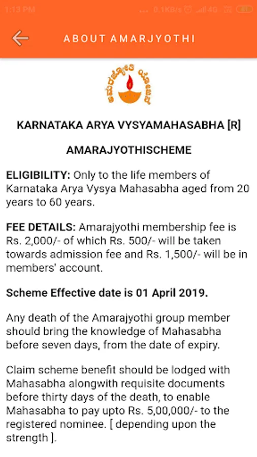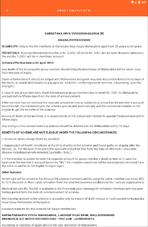 This app is for Amarajyothi scheme members of Karnataka Arya Vysya Mahasabha (R) community members. The App gives complete information about the membership, Validity, Account information, Benefits and other important information to the members.