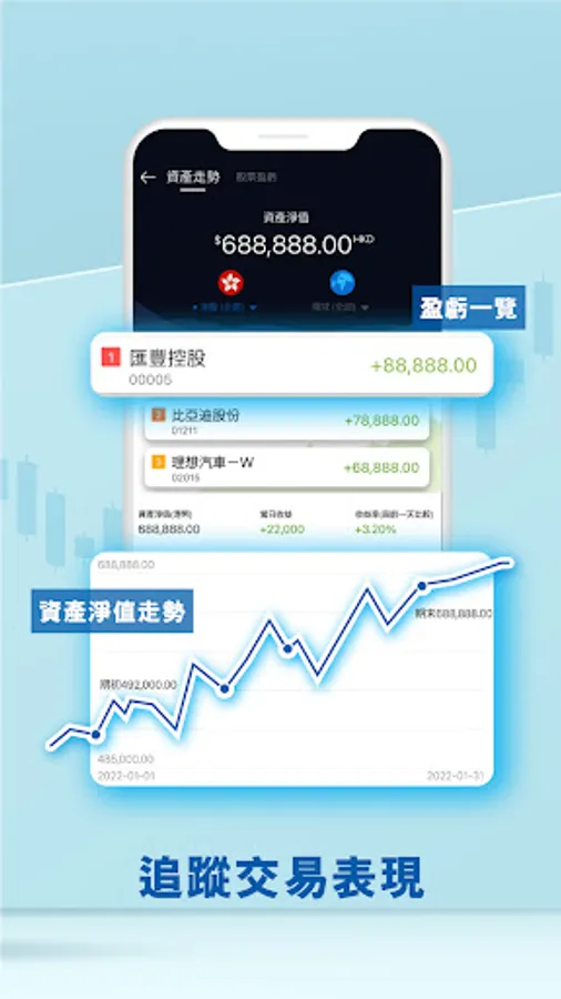 ● Performance Analysis: With Asset Trend and P&L Summary function helps you track and improves your trading performance easily.