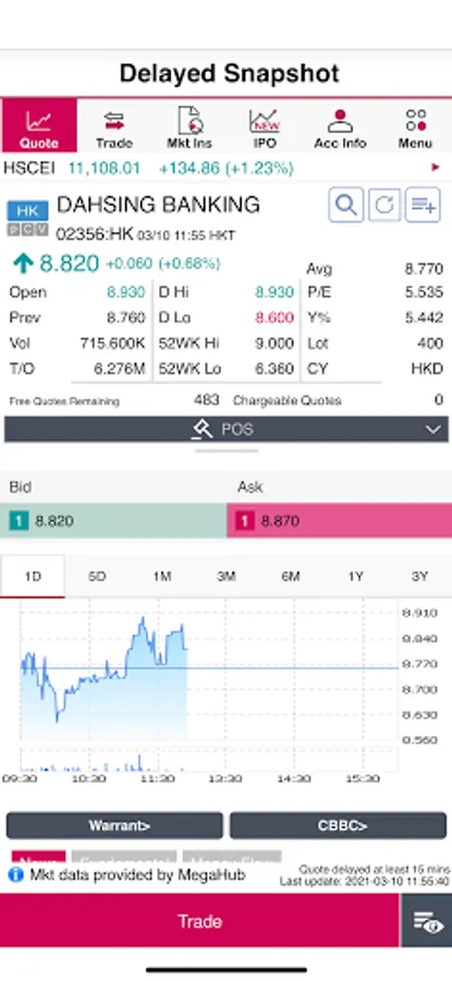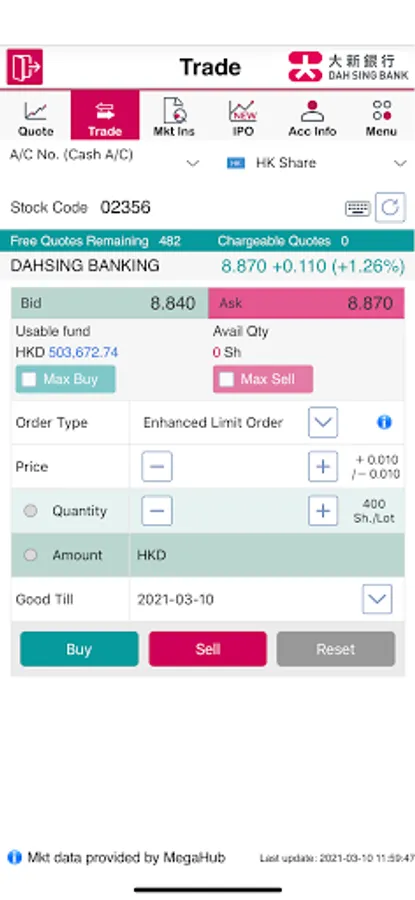Dah Sing Bank will from time to time update and enhance the stock trading feature in the Mobile Stock Trading App to enable better and more comprehensive services through the mobile channel.
