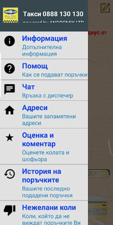 You only order two-button taxi !!! Your order is accepted and processed by our dispatchers, then you see what your tax is, where it is in the coin, how long it will be with you and how it comes to you. When you place your order, you can choose different requirements such as: the car travels through a dirt road, carries a luggage, has a luggage compartment or wagon, and a bunch of others. You can also write directly to our dispatchers through our chat system in real time.
