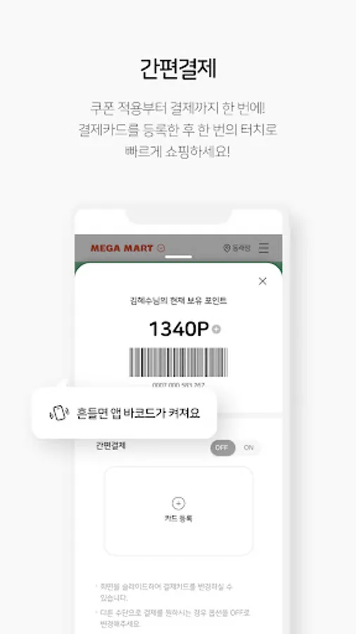 Product discount, point accumulation, and payment are all OK in 1 second. After registering your payment method in advance, simply scan the barcode to pay conveniently.