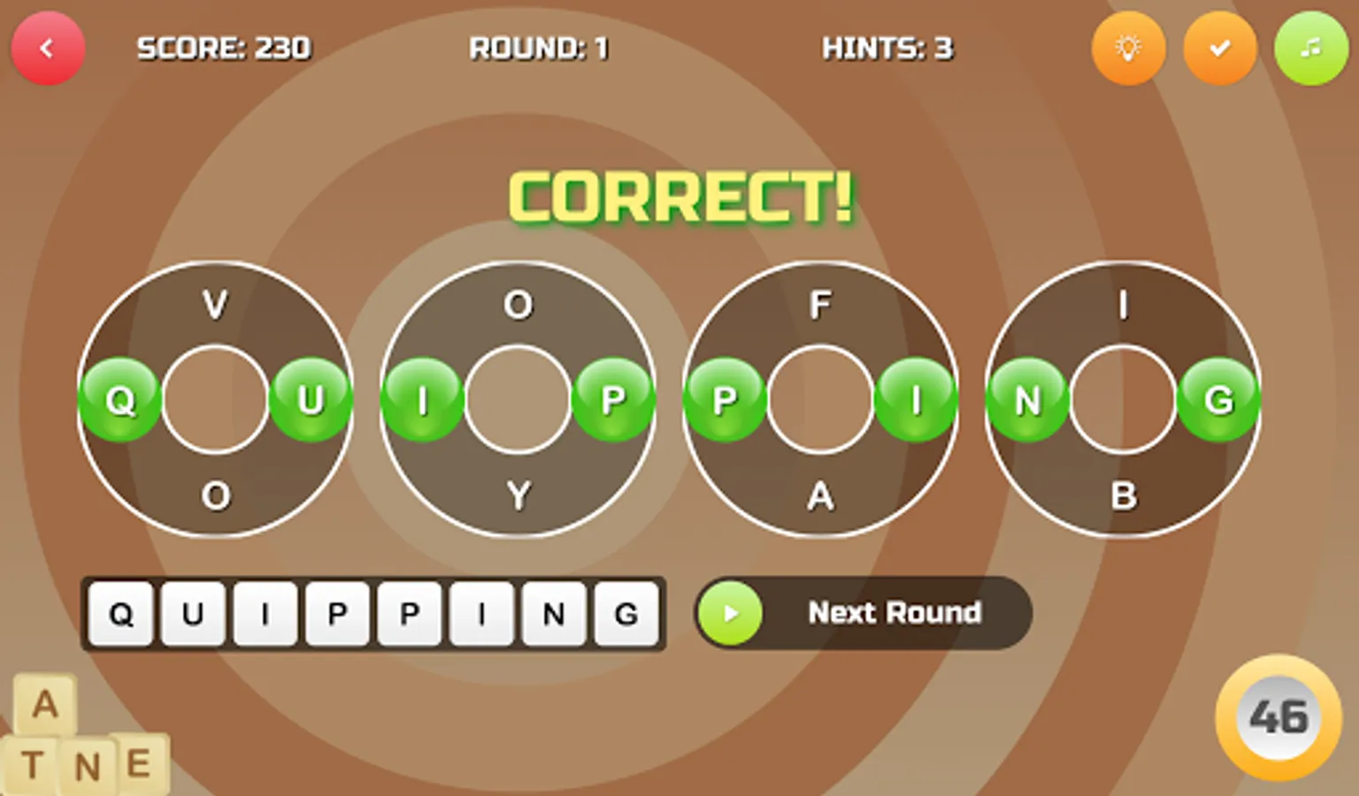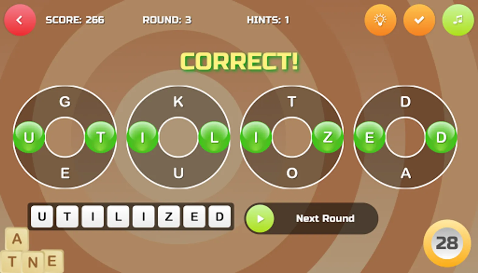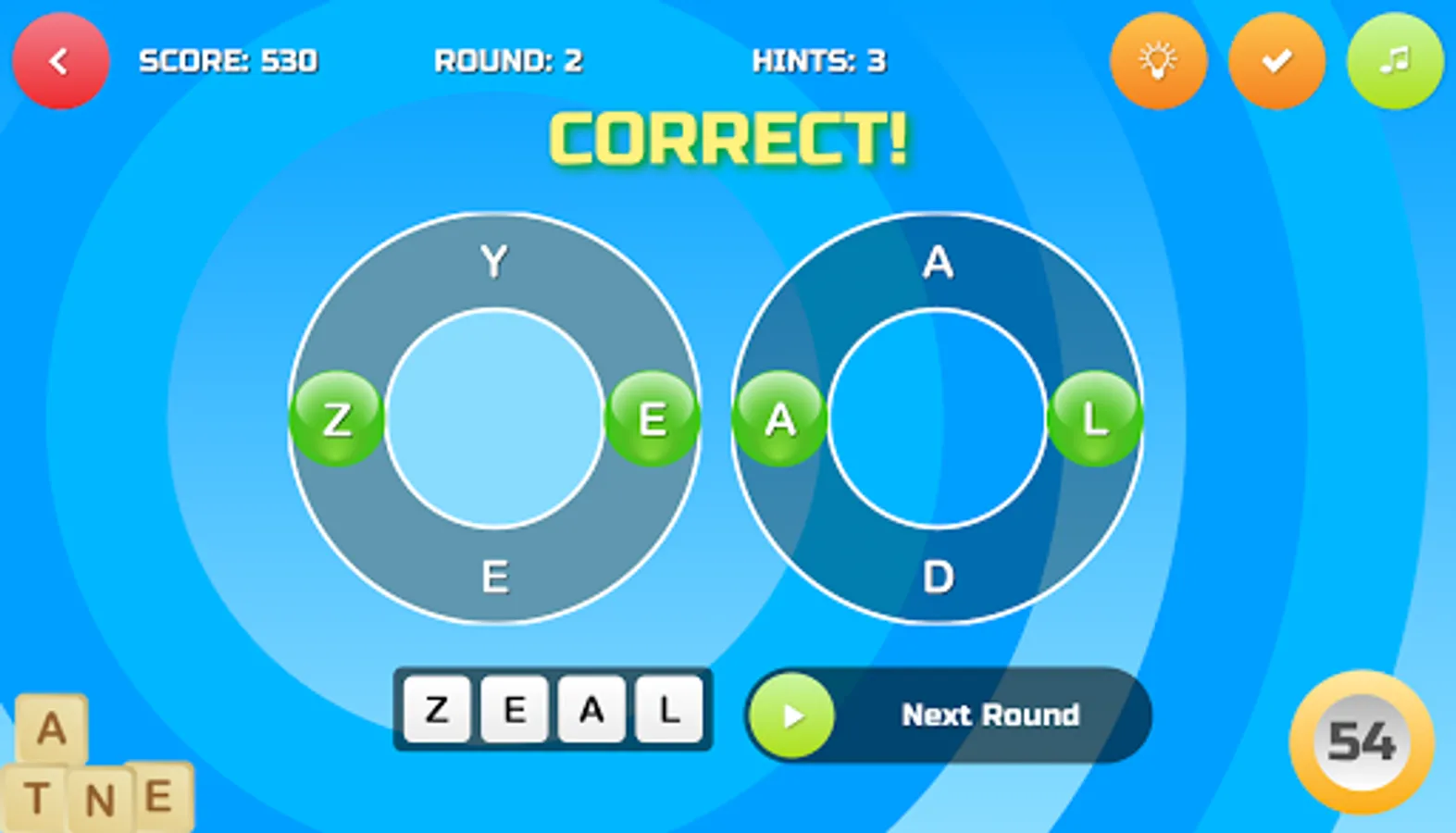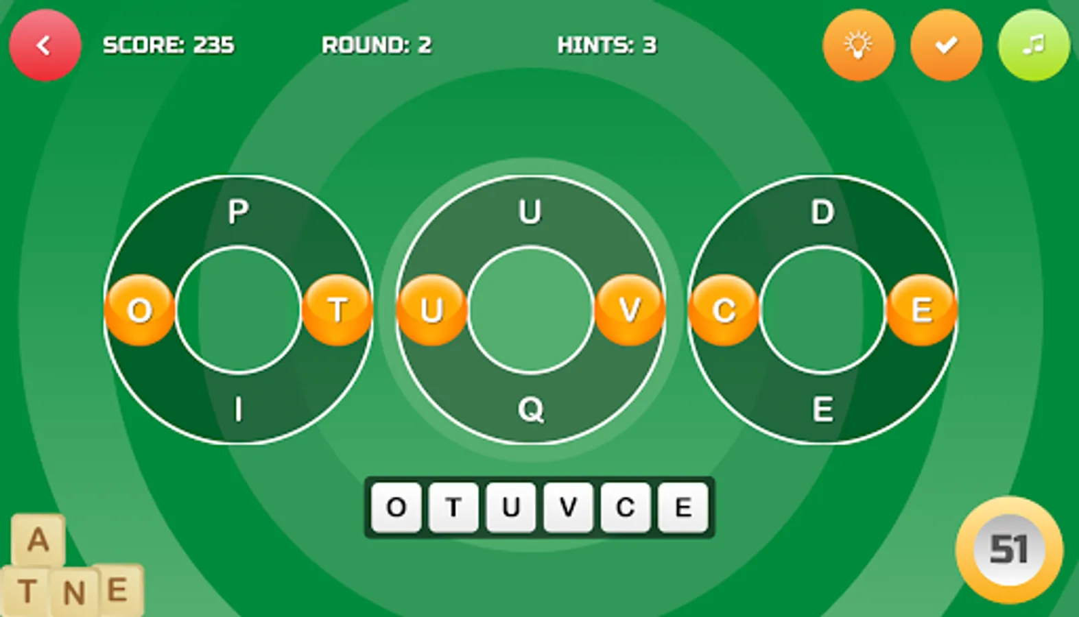 Can you imagine what it's like to turn a game on its head? Here's your chance to do it over and over again. God of the Rings is a cool word game yet that will have you in a spin … quite literally! Unscramble the letters on the rings to form words. Just rotate the alphabet rings so that the letters falling on the center slots form a valid word. Do it faster, better, and as it gets tougher - become the God of the Rings!