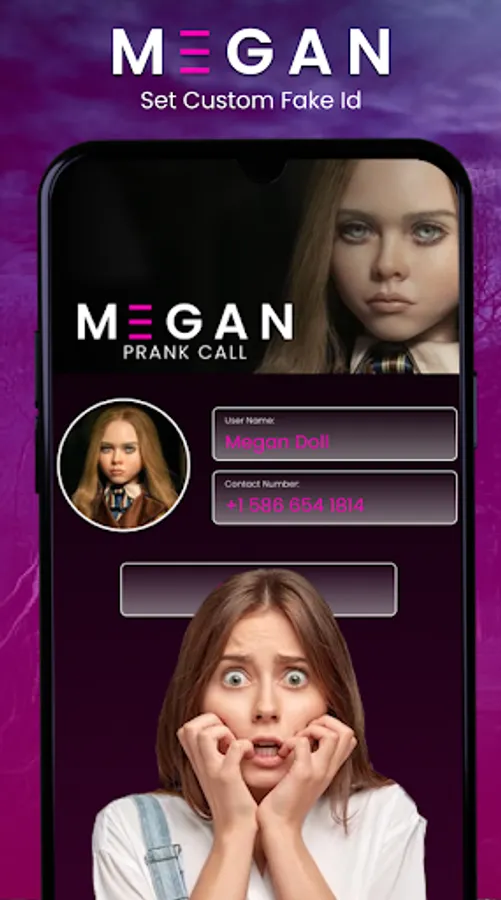 Video prank call from megan the doll with scary doll voice and cute face to do horror prank to do with your friends. Receive fake call from megan using fake caller id to prank call imitation with your girlfriend. Using this prank calling app you can simulate video call anytime anywhere to enjoy the funny reactions of your friends.