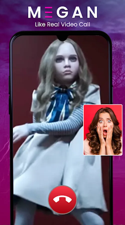 Get unlimited phone calls from your favorite scary character megan on the phone screen with dancing video of m3gan. Like a real call is received on your phone using this prank calling simulator and enjoy the time with your friends. Scary video call is just for prank with your friends and you are the one who know the horror incoming call is made using fake caller id of m3gan the killer doll.