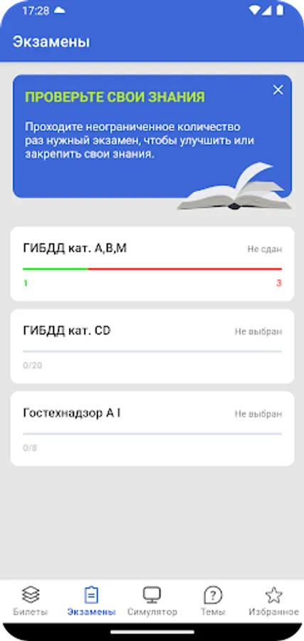 SDA exam simulator, tickets, exams and traffic rules topics.