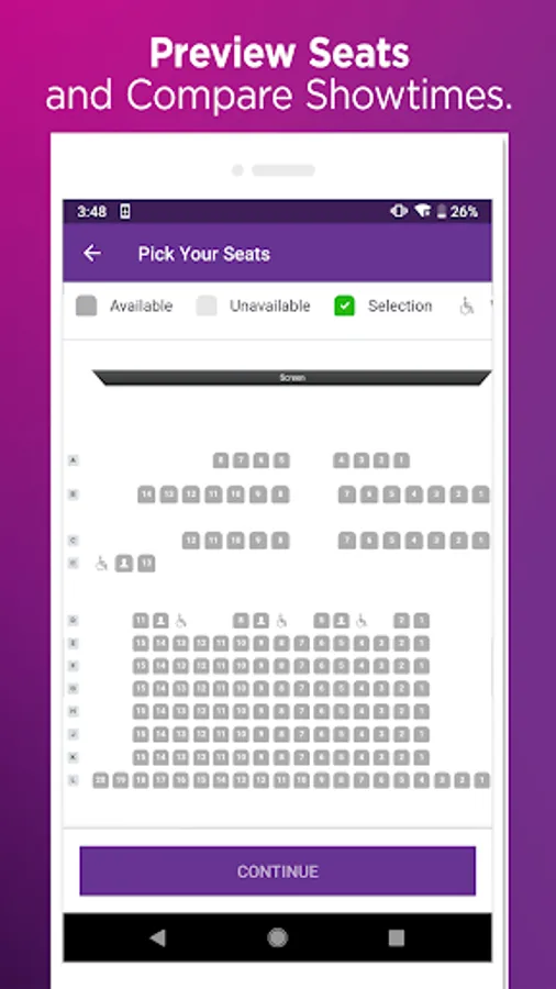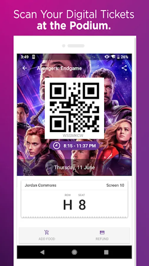 Skip the lines! Pick up your popcorn, use the app at the podium to scan your ticket, and enjoy the movie!