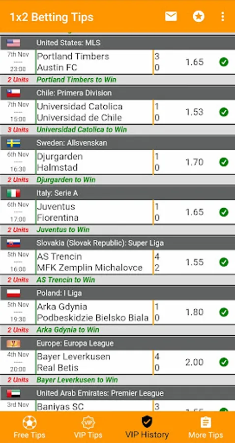 - Recent VIP winning tips history.