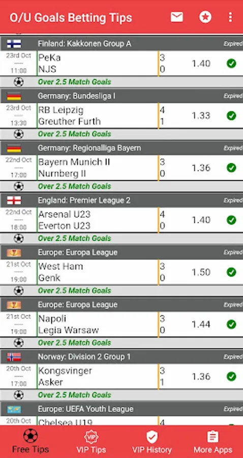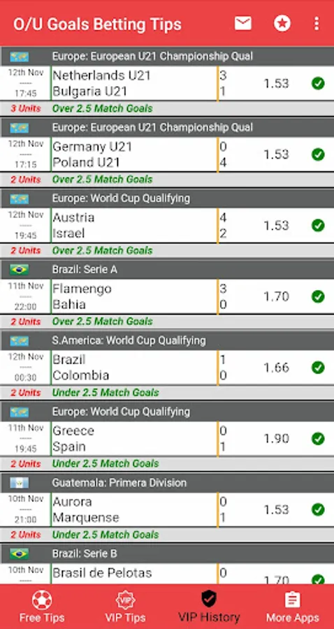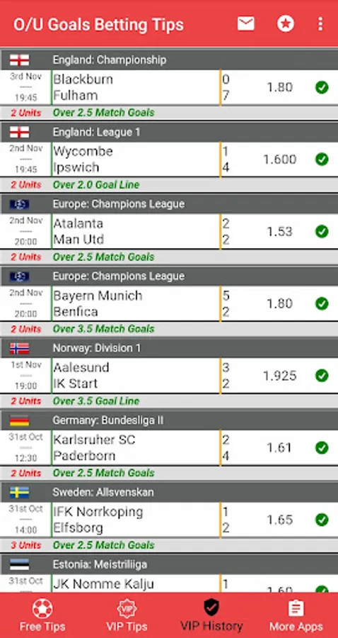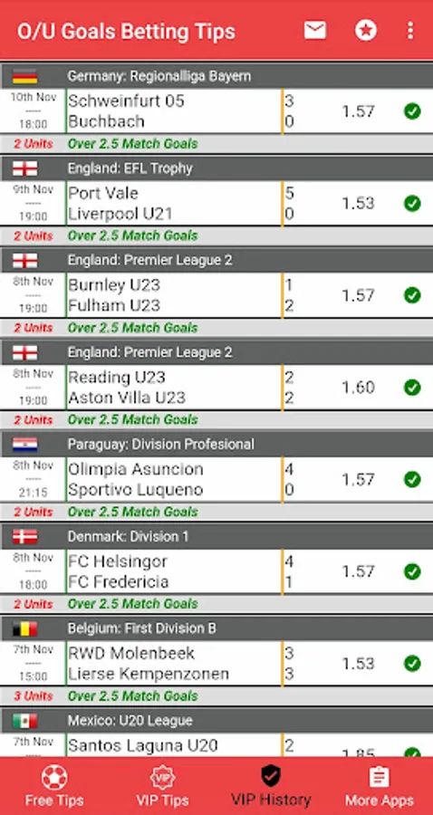 Our Football Betting Tips - Over Under Goals app gives you daily 2-4 free tips.