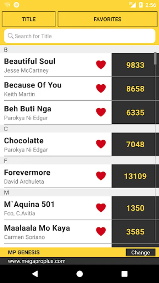 Just get your app updated regularly for latest songs. You can also have your favorite playlist by tapping the heart icon.
