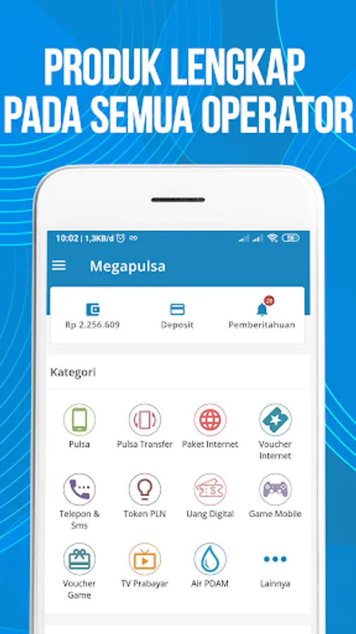 Megapulsa is a payment application or topup for digital products that provides internet package refill services, credit, internet vouchers, prepaid PLN and various other products. Several operators are available on megapulsa such as (Telkomsel, Indosat, Three, XL, Axis, Smartfren, Bolt, MLBB, Grab, Gojek) and others.