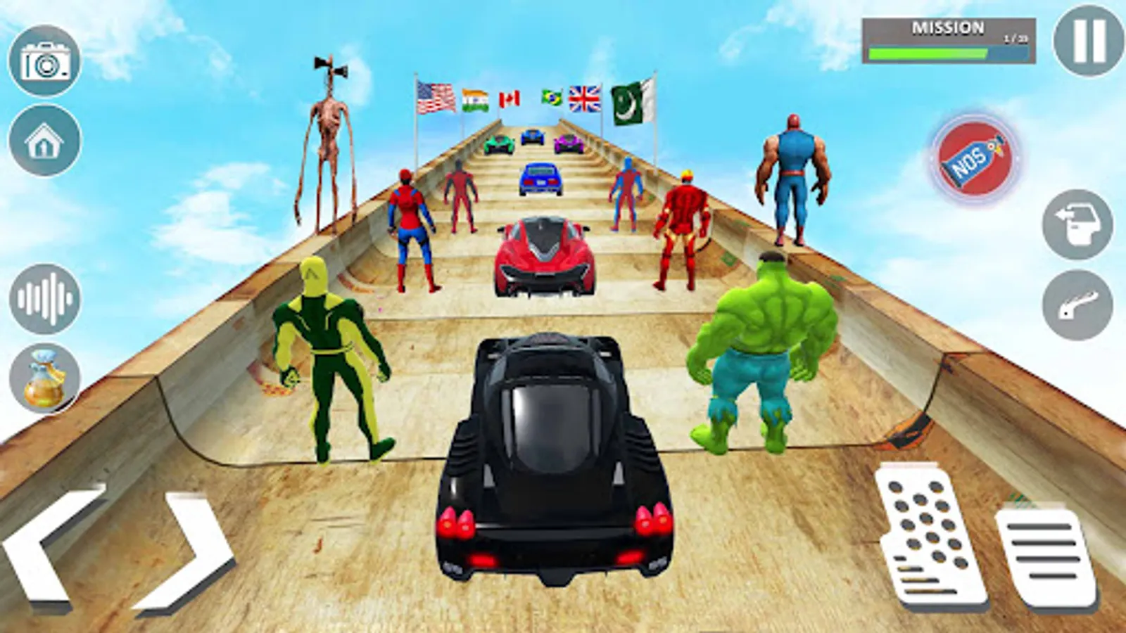 Get ready to race in the best mega ramp simulator game updated in 2022. Get on your sports cars and start racing with your favorite superhero because you're going to need some furious speed to excel in this car racing game. Pull speed stunts, jumps and flips. Masterfully drive over objects and control your car stunt with skill this new superhero car stunt. The mega ramp will always try to knock you off your superhero car stunt and so you need to be careful driver. Perform endless super cars stunts, tricks and jumps as you can in this ultimate mega ramp game, master the fields, downhill and all obstacles on your way.