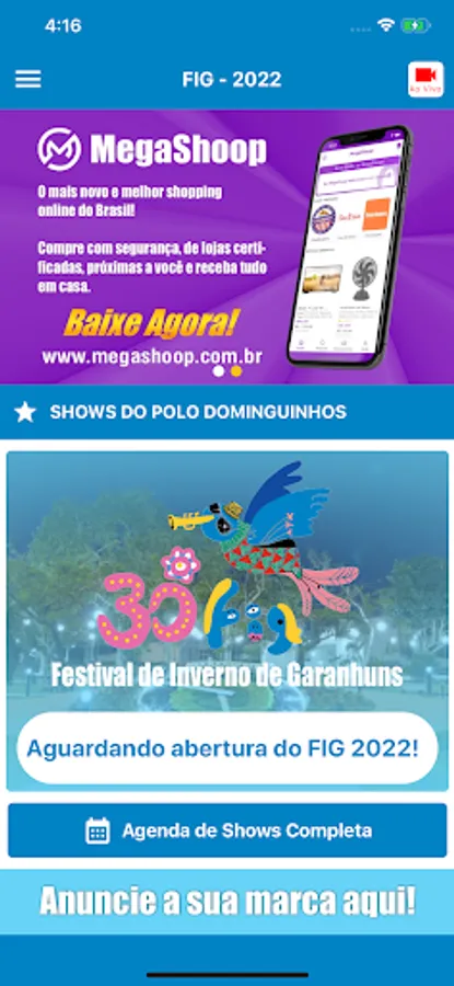 Advertise your store or service in the app and gain visibility from thousands of people who used the Garanhuns Winter Festival app!