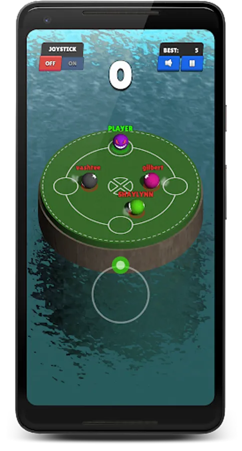 An endless ball bumping game where you will be against endless opponents(3 at a time) on a small circular playing ground in the middle of the ocean.