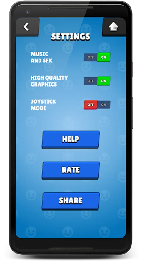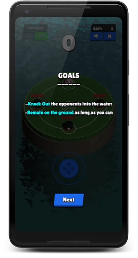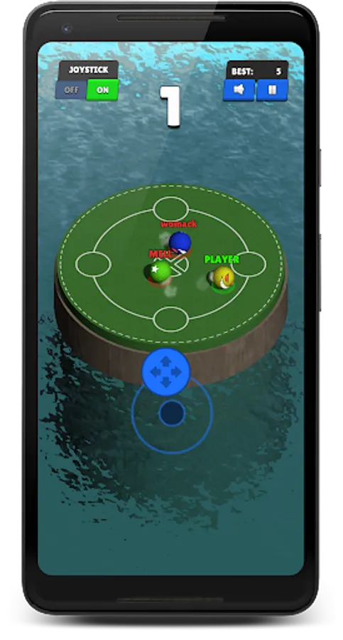 Your goal will be to remain on the ground while making sure that your all opponents falls into the water. The player can be controlled via 'device tilt'(needs accelerometer sensor) or 'on-screen joystick'.