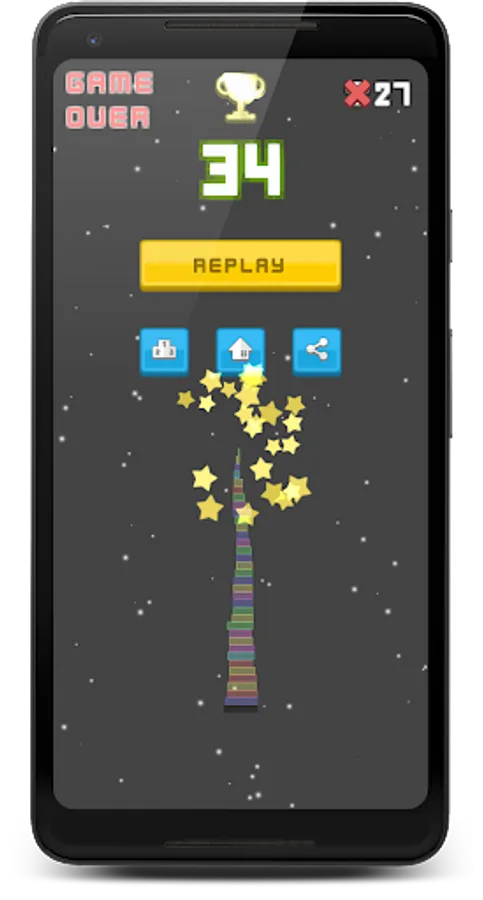 Stack up the blocks, get points and compete against yourself or the world. For each correct drop you will get 1 point. A perfect drop will expand your block or reward you 1 extra point if expansion limit is reached. Although dropping the block imperfectly will reward you 1 point but your block size will be reduced so stay focused and keep going as high as you can go.