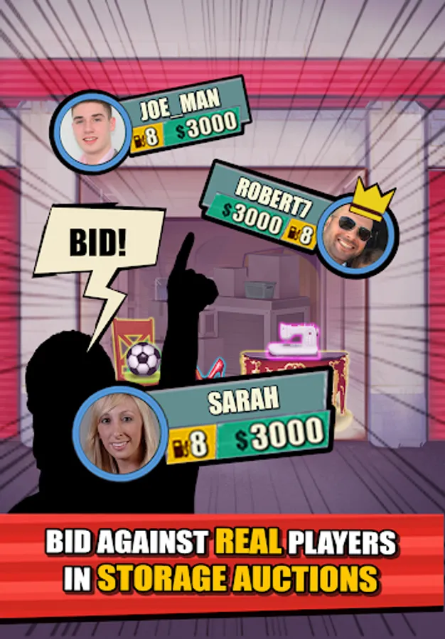 Welcome to HUSTLE CITY, a competitive multiplayer auction game about bidding at Storage Auctions and selling at the Pawn Shop for a profit. In the Hustle PVP game, it’s all about buying low and selling high. Do you have what it takes to beat all the wannabe Hustlers and become the HUSTLE BOSS? Take part in auction wars and win big in bidding games!