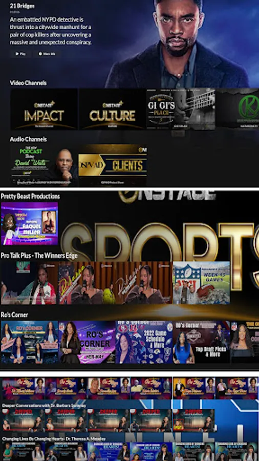 OnStage PLUS is committed to bringing the stage to the world by bringing LIVE and on demand stage performances for comedy, music, theatre and motivational talk. Our audience is all over the world... no matter if you are in the country, on a hillside, in the inner city, suburb, island, or desert; we bring the entertainment found on live stages to your digital screen. PLUS, we offer original content on culture, family and sports. Our shows will entertain while presenting the rich diversity in cultures, free of stereotypes. Our goal is to entertain, educate and inspire our audience for positive personal growth.