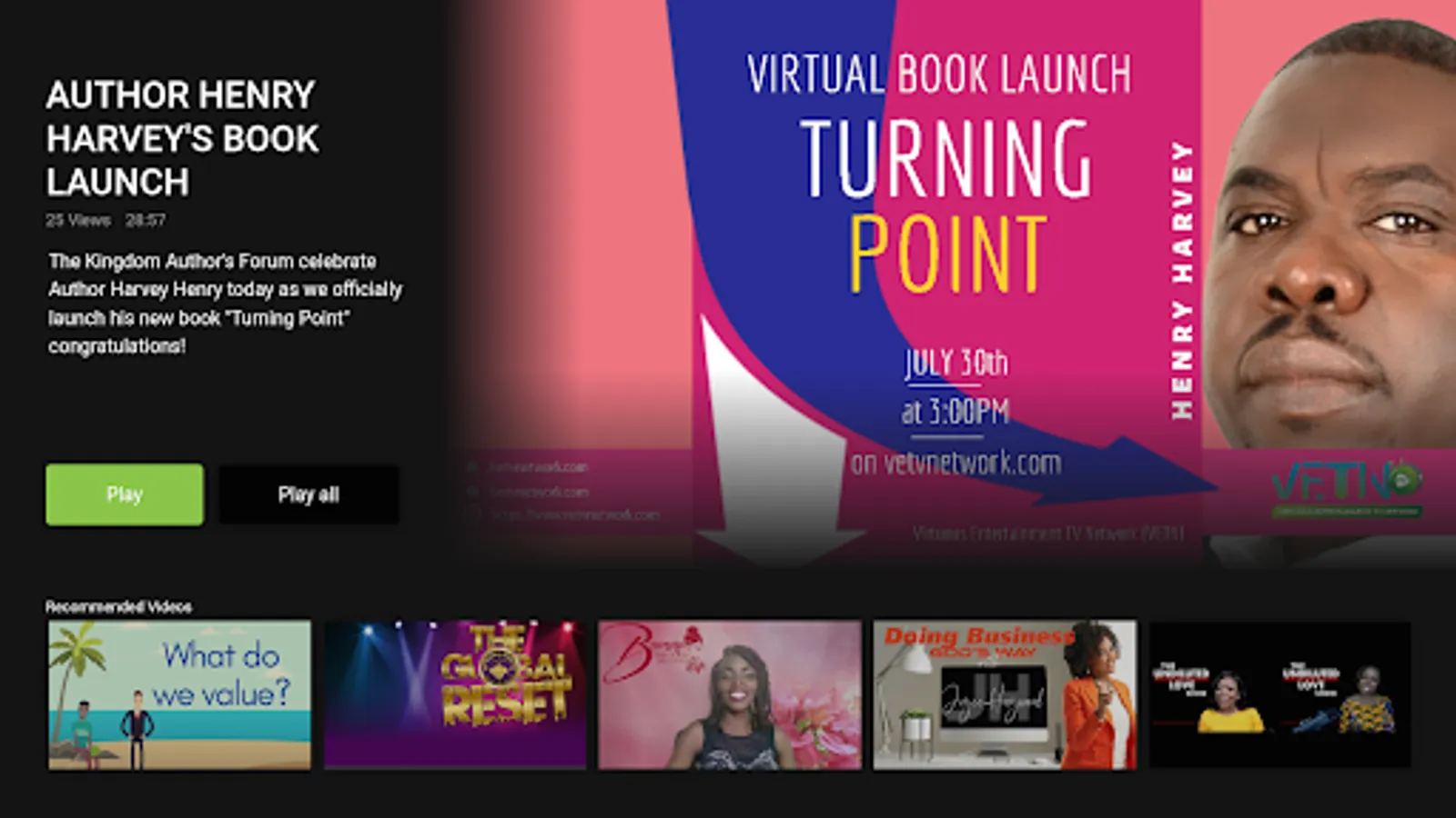 Are you dealing with serious life challenges, unable to cope with stress? Unable to find solid answers? Need a good laugh, a great recipe or good fitness routine? Then join us on Virtuous Entertainment Network (VETVN), a brand new Christian Lifestyle Webzine that highlights and deals with real life stories by the people who have persevered through them.