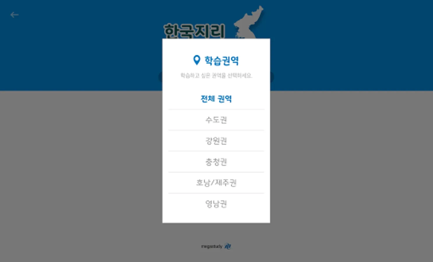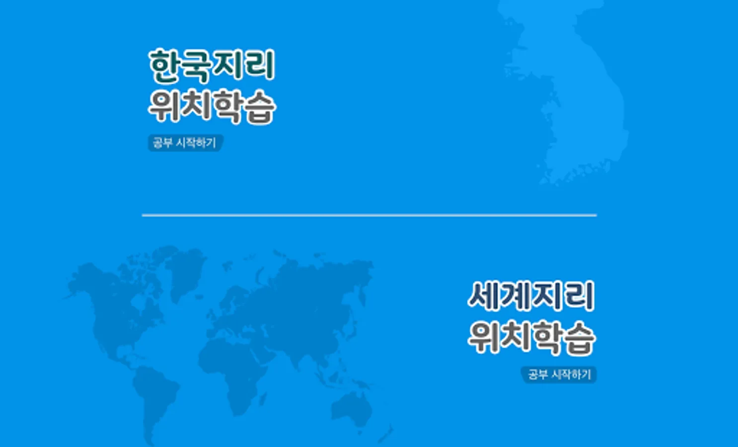 - 한국지리는 권역별로, 세계지리는 대륙별로 세분화하여 자신의 취약 부분을 선택하여 학습할 수 있습니다.