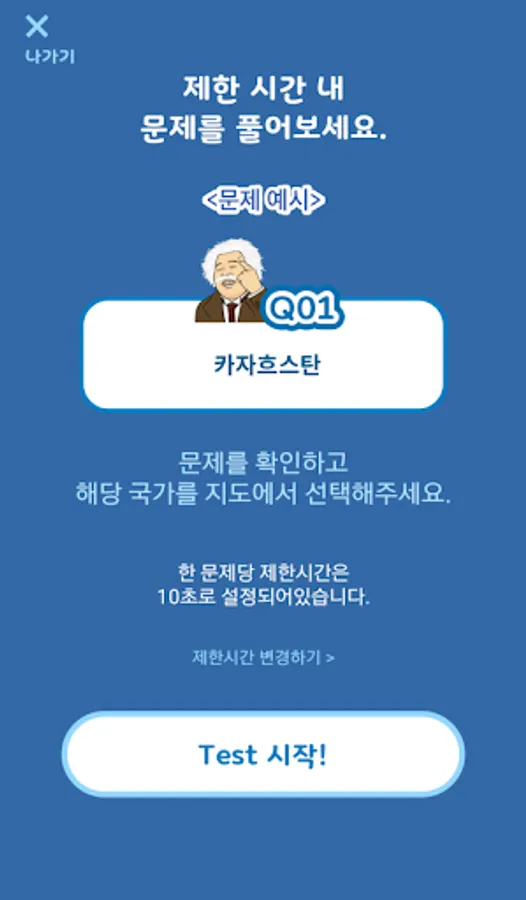 - 제한 시간 내에 질문에 해당하는 지역을 지도상에서 터치하여 퀴즈를 맞힐 수 있습니다.