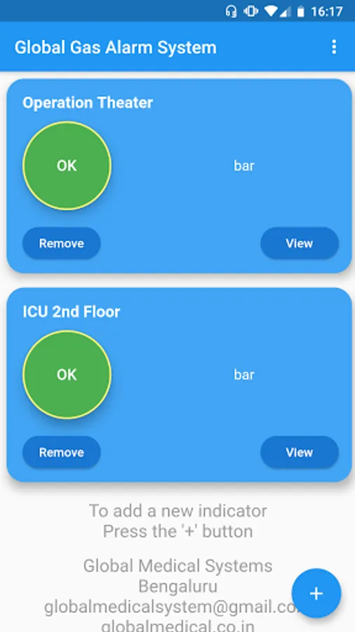 View the status of the Global Gas Alarm Systems remotely without having to check the indicators' displays every time. This app shows you real-time status of all the paired indicators, and also notifies you when there is an abnormality in the system.