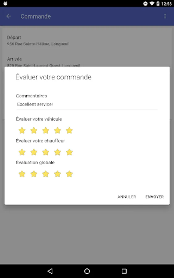 Give feedback to the taxi company about the quality of service you received.