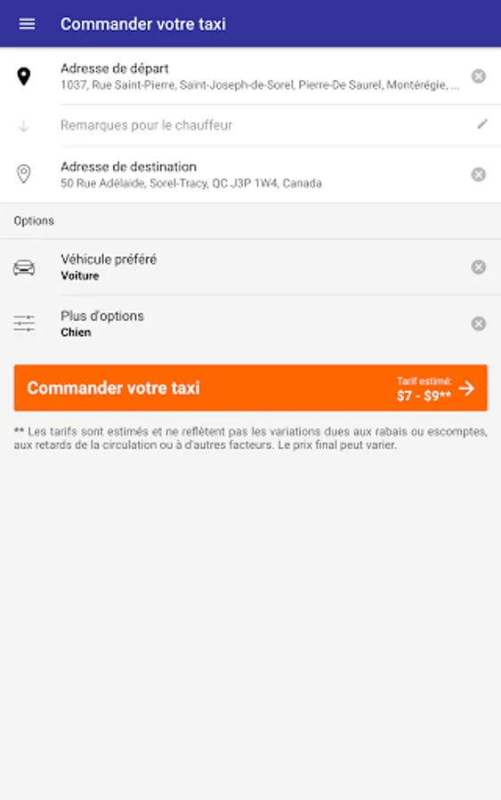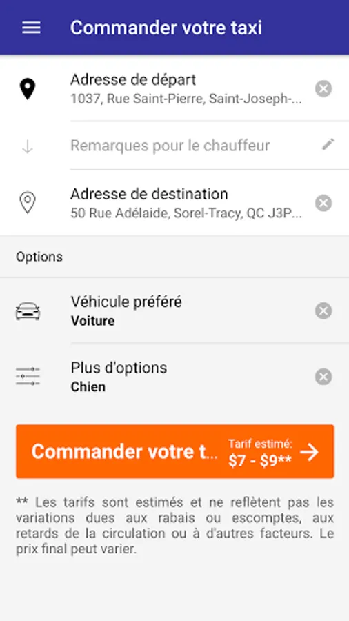 Give your opinion to Taxi Sorel-Tracy about the quality of the service you received.