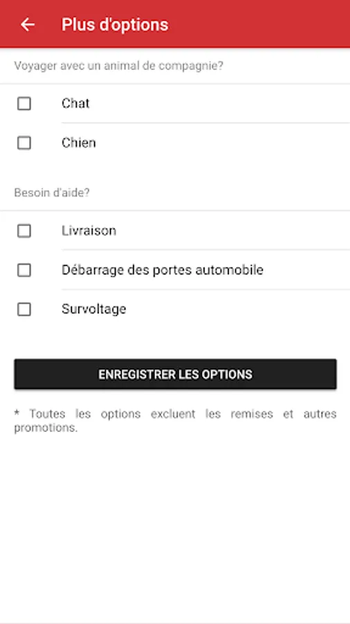 Do you want to pay by credit or debit card? Are you traveling with a dog? Do you need a Van?