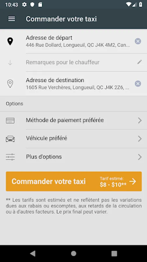 You can now easily get a quick estimate of your trip by simply completing your departure and destination.