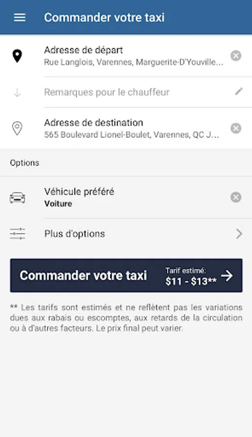 Give your opinion to Varennes Taxi about the quality of service you have received.