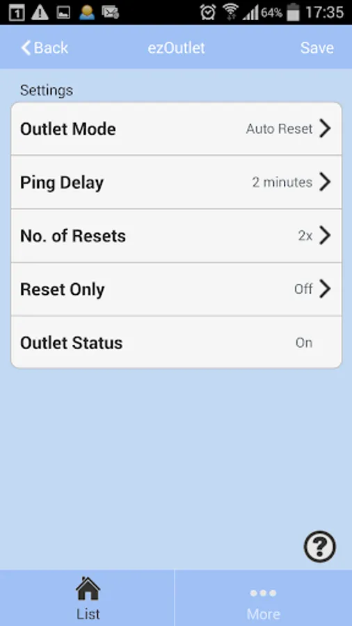 The ezOutlet App is for use with the ezOutlet device. The ezOutlet device is designed to auto power-cycle when network fails. Any installer knows the pains of driving all the way to a remote job site just to restart a network connection. With ezOutlet device the network device will be reset automatically, saving both time and costs. Should there be a need, the installer can also check on the status and manually reset the device via this App.