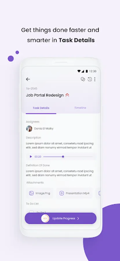 Taskedin helps you stay organized, meet deadlines, and maintain productivity. Set start and finish times for each task, delegate to team members and designate overseers for flawless collaboration. Be in control of your tasks with Taskedin.