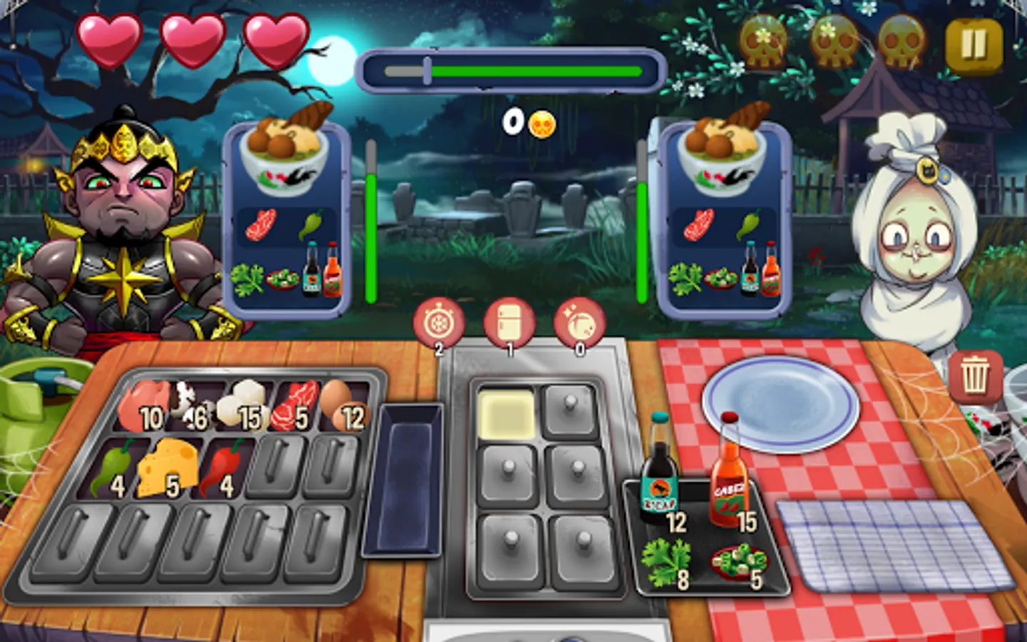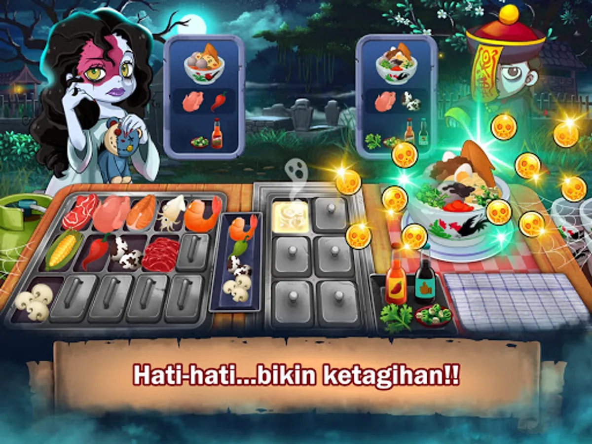 - Combine all available ingredients to make various meatball dish combinations and serve it to the ghosts.
