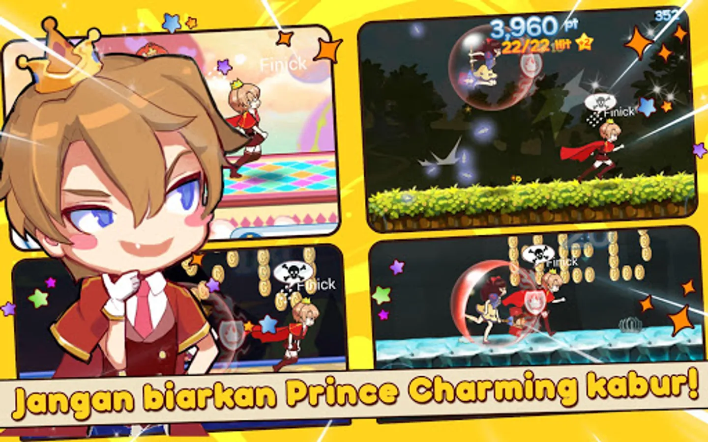 It’s time to teach the Prince a lesson! Help the Princesses catch him in this endless FUN running game where you can actually hit the enemies standing in your way.