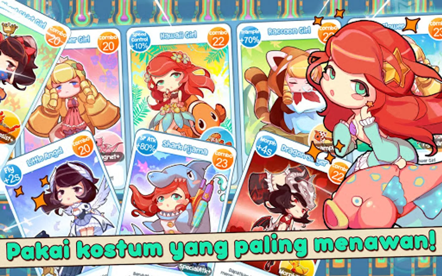 ✦ Dress up with costumes that can makes you fly longer, hit harder, or get rich easier!