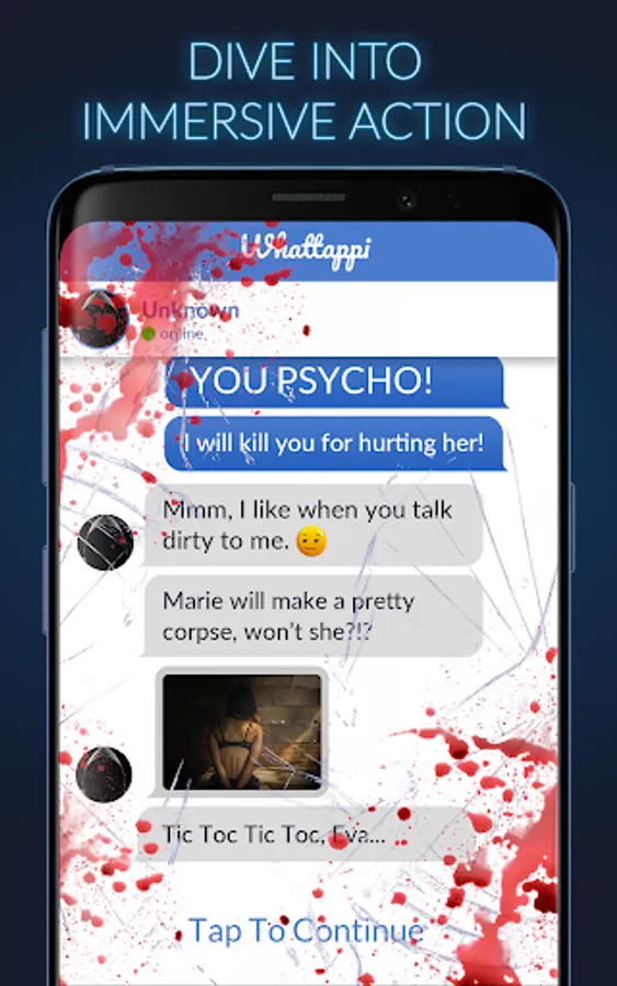 • Experience the story through the protagonist's phone. It takes you through chats, dating apps, and social media, to tell you a story that is more personal, more immersive, and more interactive than a book.