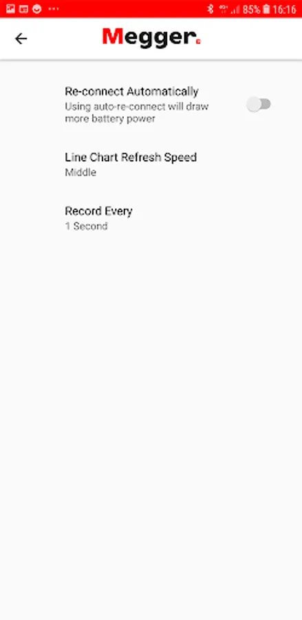 Download the “Megger Link” App. Turn on the Bluetooth function of the meter by pressing the Bluetooth button and open the Megger Link App to connect the DCM.