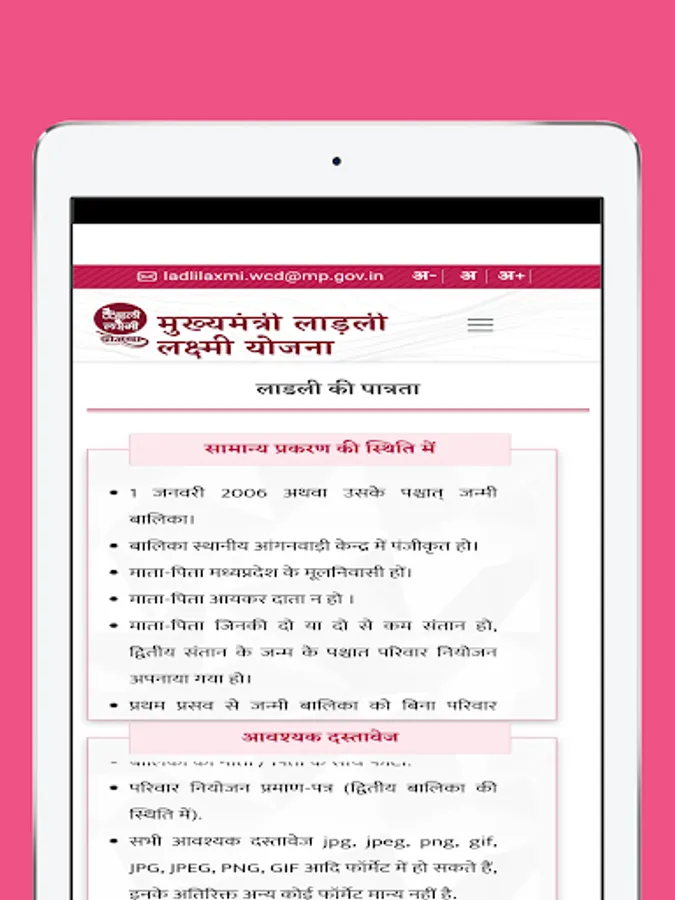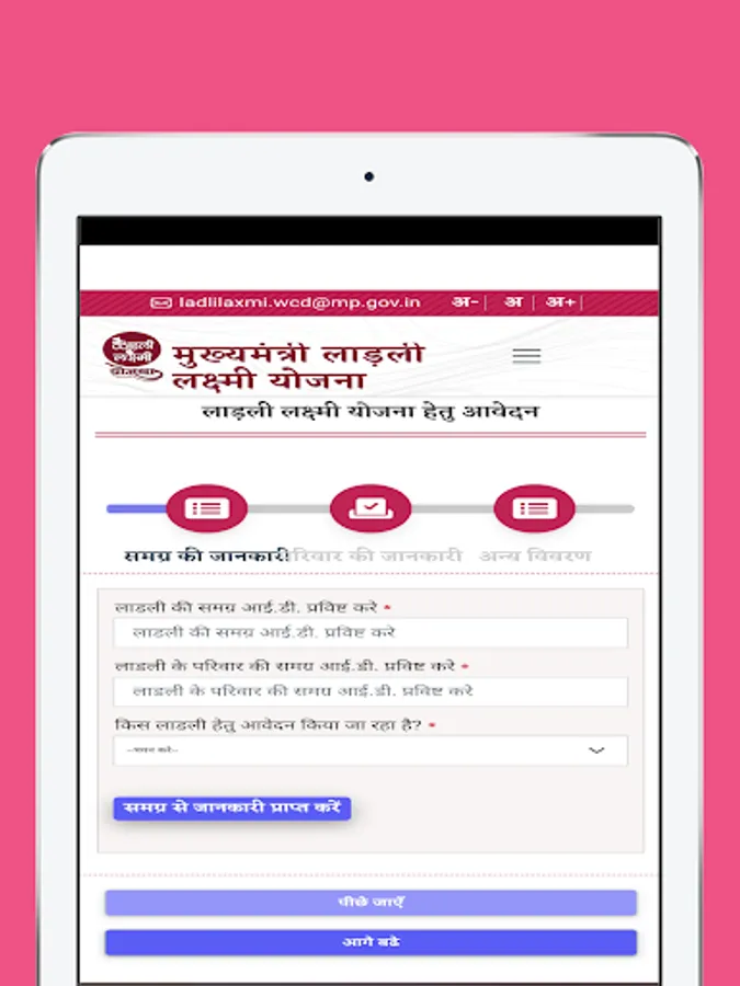 लाड़ली लक्ष्मी योजना हेतु आवेदन