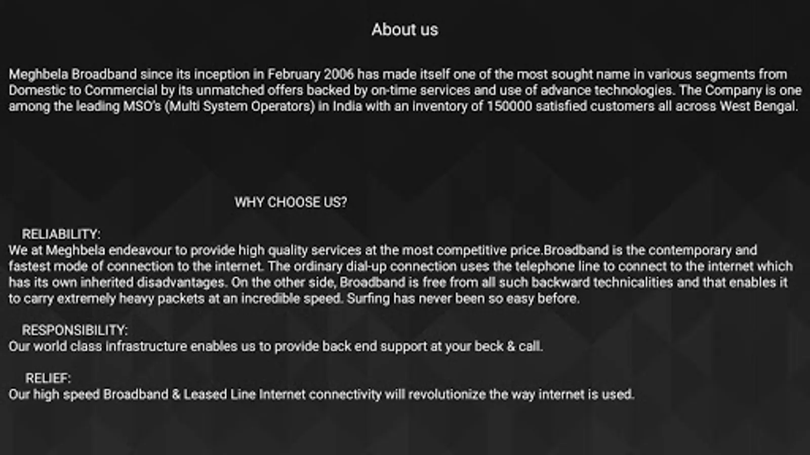 Meghbela Cable and Broadband Services Pvt Limited is one of the leading Television and Broadband service provider in India catering its services to approximately 70 cities with over 150000 happy customers. Meghbela has come up with an application which will allow customers to view 100+ Live Tv Channels at their own convenience.