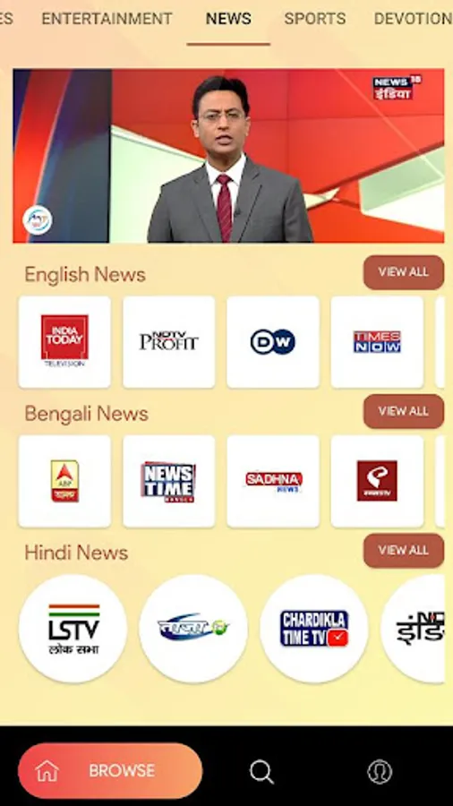• Access live TV channels across genres like sports, news, entertainment and many more.