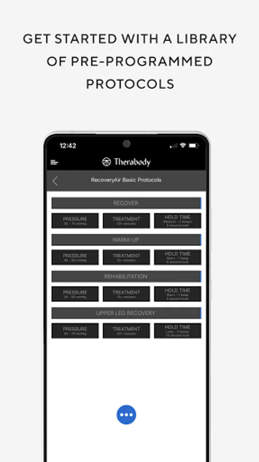 Explore a library of pre-recommended protocols to optimize your recovery. For RecoveryAir PRO users, connect your device seamlessly via Bluetooth® to access 5 unique programs that can be extensively customized with a variety of precise pressure ranges targeting specific areas of your body. Advanced settings let you adjust time, control pressure, hold time, stagger treatment, focus pressure, and more, for a completely personalized experience. Plus, name your devices, track usage data, and create, save, and share your customized routines all via this singular app.