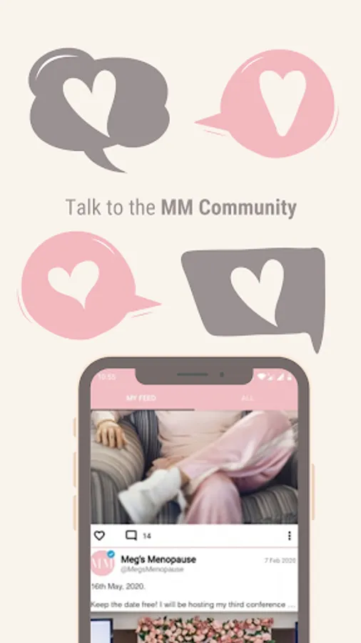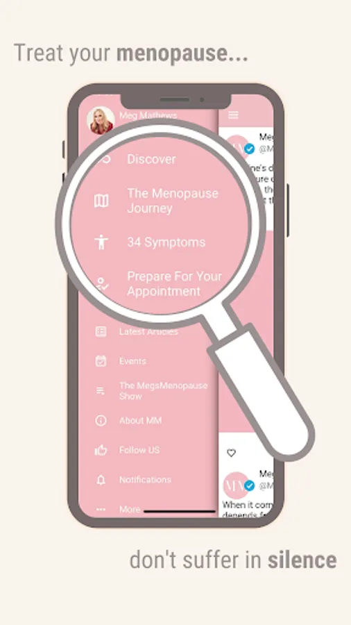 Join the thousands of women breaking the menopause taboo, and tackle your menopause in a simple, convenient way. MegsMenopause app is an everything-in-one menopause safe space app jam packed with information. You can now follow other people’s profiles on the app, post on the feed, and chat privately to each other.