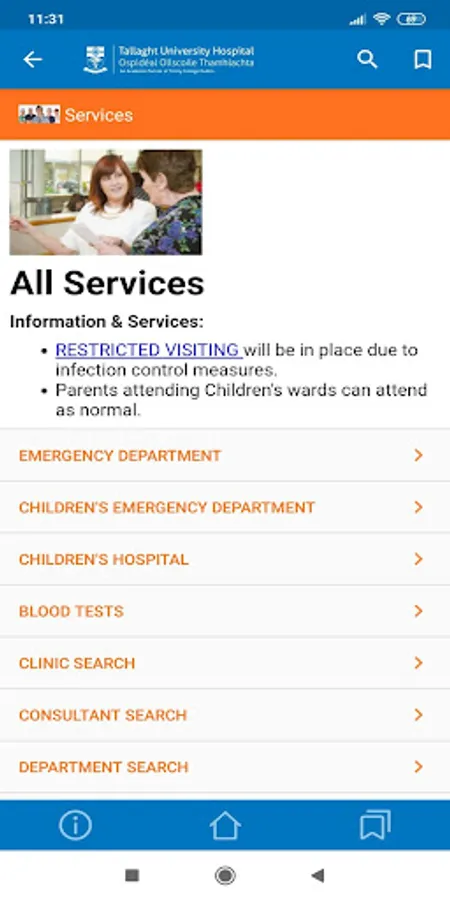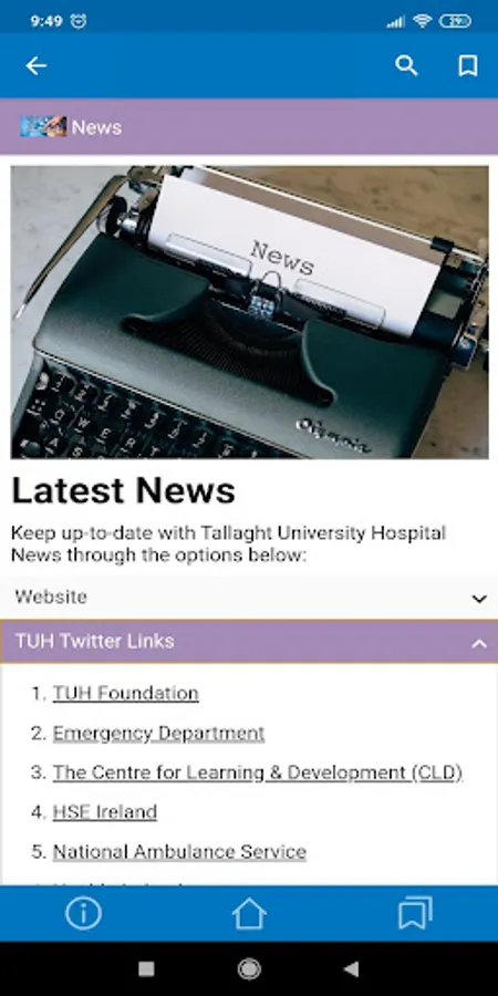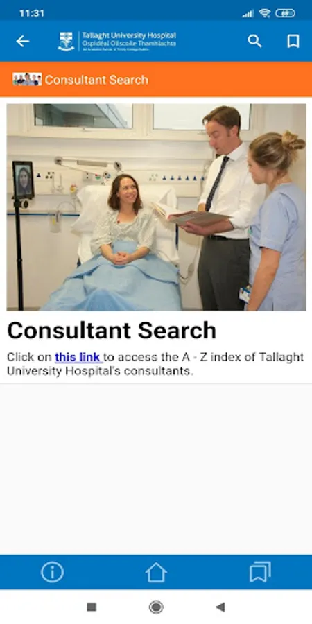 The free Tallaght University Hospital App includes many helpful links and resources, including: