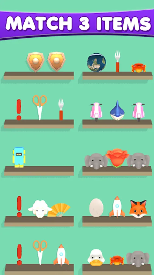 Royal Matching Goods game is all what you need right now! Take the right item to sort in the right shelve with a matching item from the shelve. You can place an odd item on empty shelve to match later. Match maximum items within the given time to win and experience the most satisfying match 3 puzzle games experience ever!!!