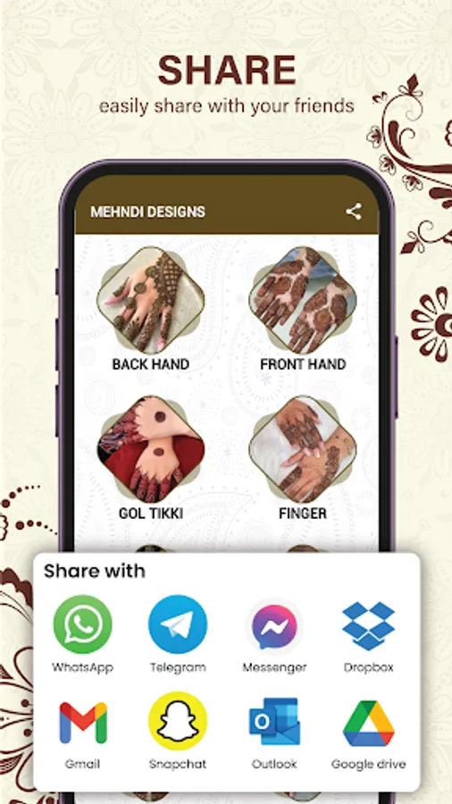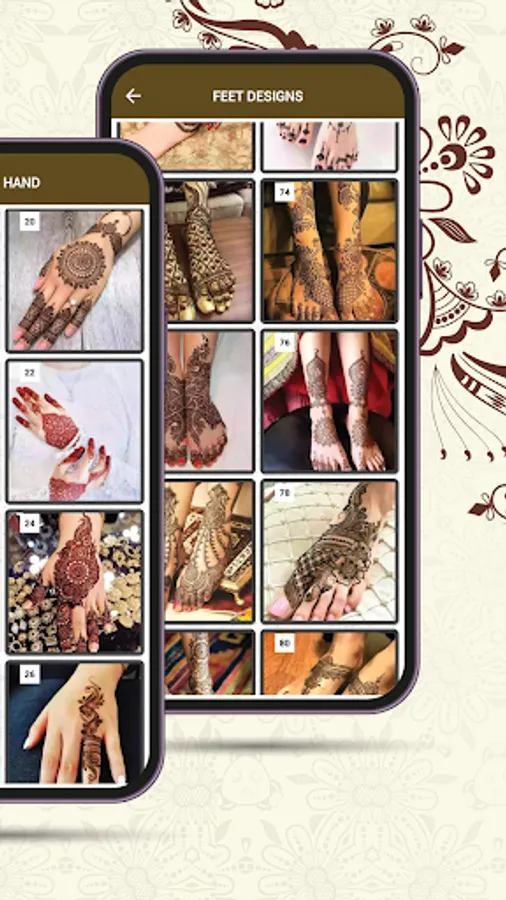 Mehndi Design 2023 has all latest mehndi designs for all cultures. This app includes pakistani mehndi designs, indian mehndi designs, arabic mehndi designs, indo-arabic mehndi designs, african mehndi designs, moroccan mehndi designs, western mehndi designs, indo-western mehndi designs etc